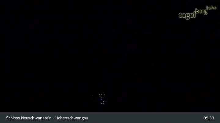 Die Kamera befindet sich am Schloss Hohenschwangau und schwenkt vom Schloss Neuschwanstein zum Museum der Bayerischen Könige.