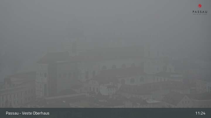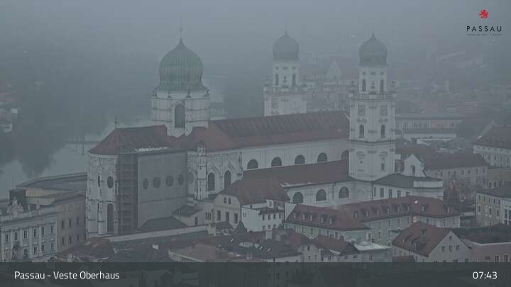 Die Webcam zeigt dir den Blick von der Veste Oberhaus über die Donau zur Altstadt der niederbayerischen Stadt Passau. Sehr gut zu erkennen sind links Teile der Burgveste, die Ortspitze wo die drei Flüsse Donau, Inn und Ilz zusammenfließen, die Hängebrücke über die Donau und rechts der weiße Stephansdom.