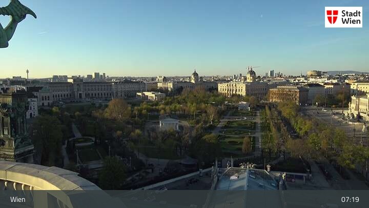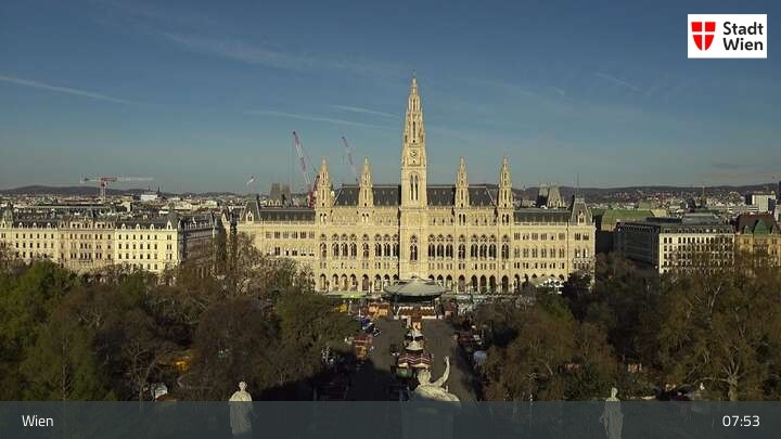 Die Webcam bietet dir einen Rundumblick über den ersten Wiener Bezirk. Du siehst das Burgtheater und das Rathaus.