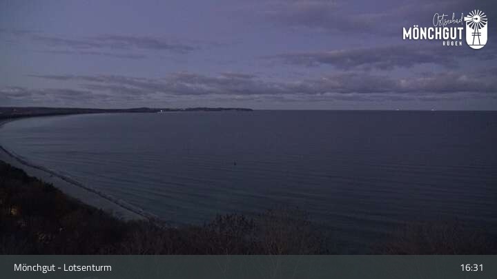 Die Webcam ist am Lotsenturm bei Thiessow positioniert und zeigt den Blick auf die Halbinsel Mönchgut, die zu Rügen gehört und an der Ostsee liegt.