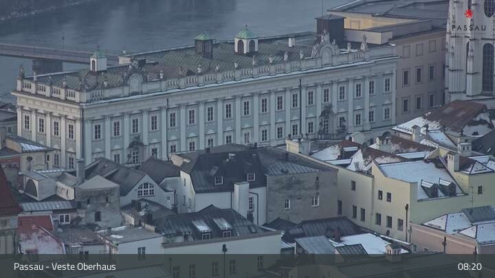 Die Webcam zeigt einen tollen Panoramablick von der Veste Oberhaus auf die Donau und die Altstadt von Passau. Neber der herrschaftlichen Burgfassade sieht man sehr gut die Landzunge zwischen Donau und Inn, auf der die Altstadt mit ihren denkmalgeschützten Häusern liegt. Gut zu erkennen sind unter anderem die Ortspitze am Zusammenfluss der drei Flüsse, das an der Donau liegende Rathaus, der weiße Dom St. Stephan und das erhöhte Kloster Mariahilf in der Innstadt.