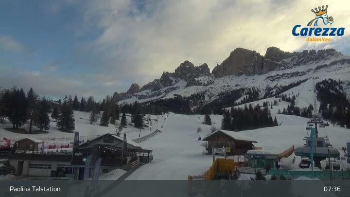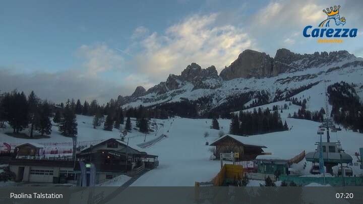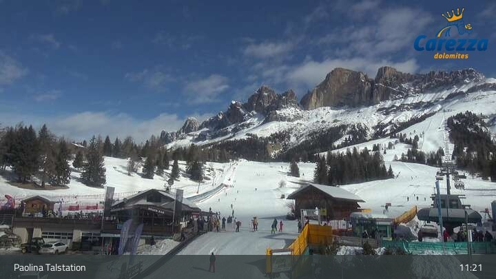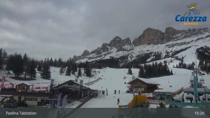 Hier siehst vom Tal in Karersee zur Rotwand.