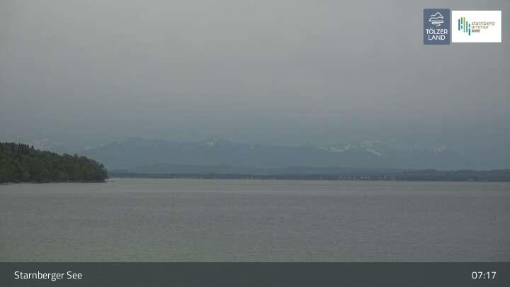 Blick auf den Starnberger See von der Wasserwacht Ammerland in der Nähe von Münsing.