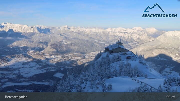 Vom Gipfel des Kehlstein zeigt diese Webcam unter anderem den Blick auf das Kehlsteinhaus und den Ort Berchtesgaden.