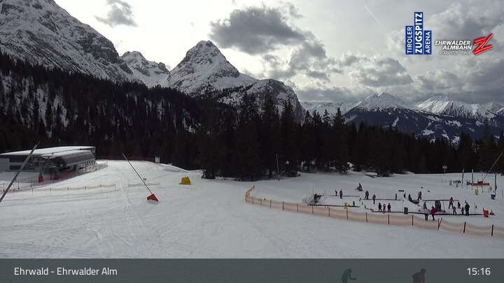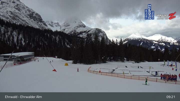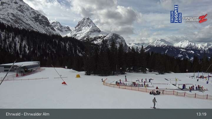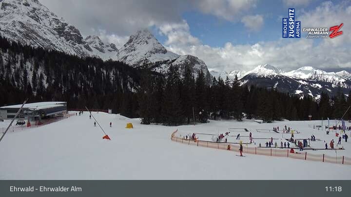 Webcam Sicht auf das Kinderland an der Ehrwalder Alm, 1,491 m