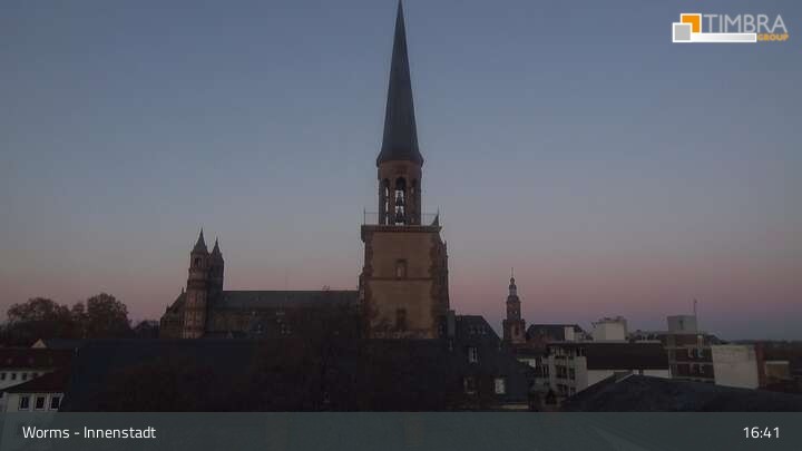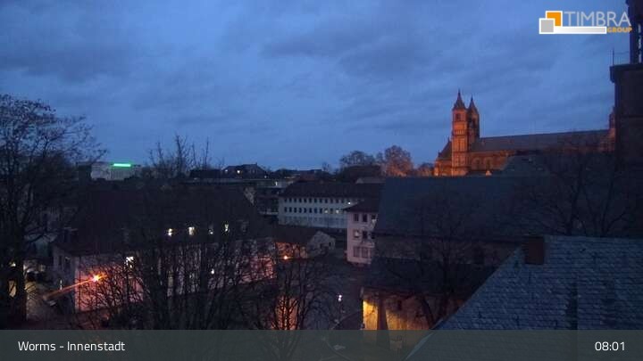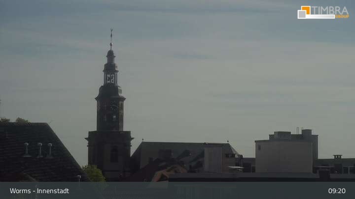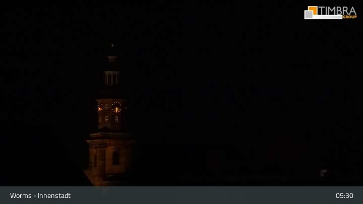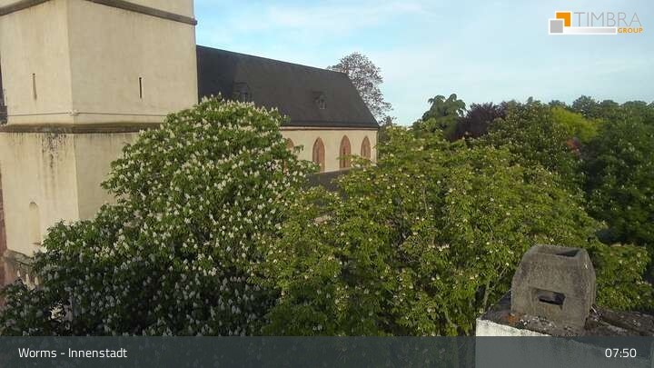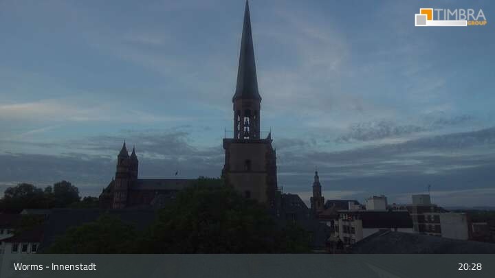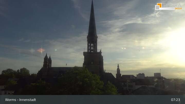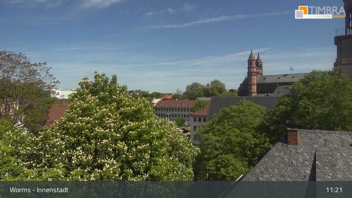 Die Webcam befindet sich in der Wormser Innenstadt. Der Blick wandert von der Magnuskirche, hinter welcher die Türme des Wormser Doms St. Peter zu sehen ist über die Dächer der Stadt bis zum Andreasstift und der Stadtmauer.
