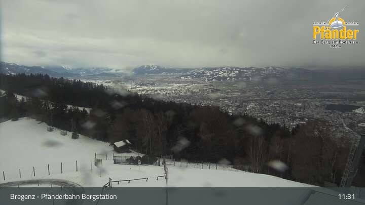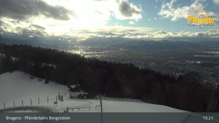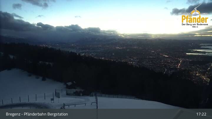 Die Video-Webcam zeigt einen traumhaften Panoramablick von der Bergstation am Pfänder hinunter auf den Bodensee und die Stadt Bregenz.