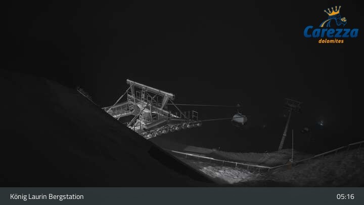 Die Webcam eröffnet von der Kölner Hütte das Panorama zum Latemar. Du siehst hier auch gut die neue König Laurin Gondelbahn mit unterirdischer Bergstation.
