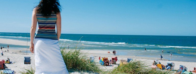 Der Inselort Norddorf verfügt ebenfalls über ein eigenes Strandareal. Von dem schneeweißen, naturbelassenen Traumstrand aus blickst du sogar bis zum Leuchtturm von Hörnum, der sich auf der Nachbarinsel Sylt befindet. Am besten erreichst du ihn mit dem Fahrrad oder zu Fuß.