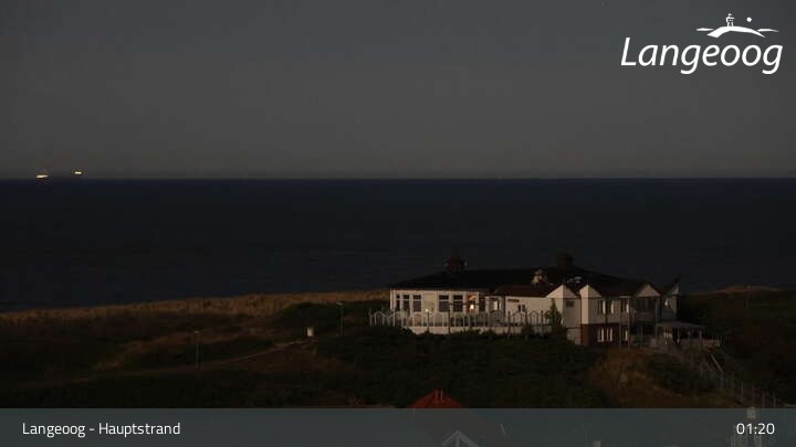 Zu sehen ist das Hauptbad in Langeoog und der lange Badestrand auf der ostfriesischen Insel.