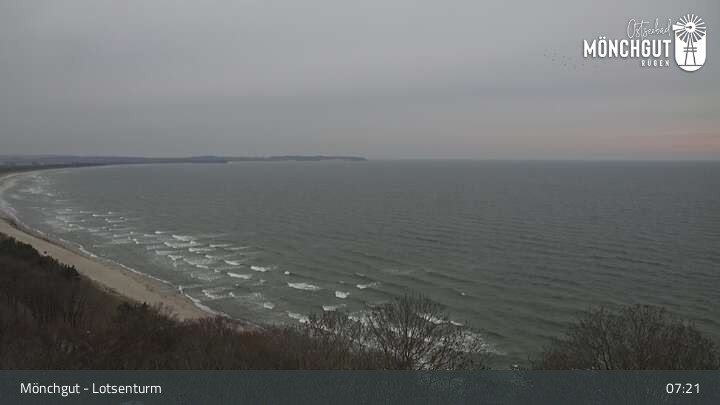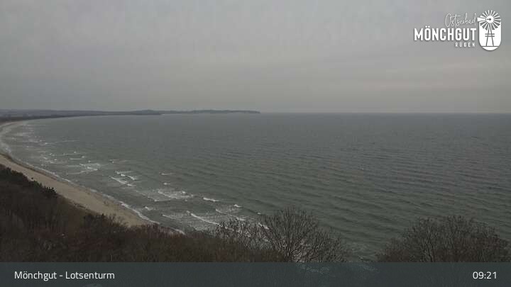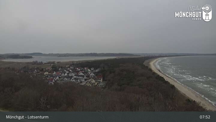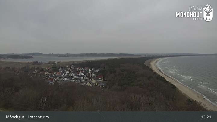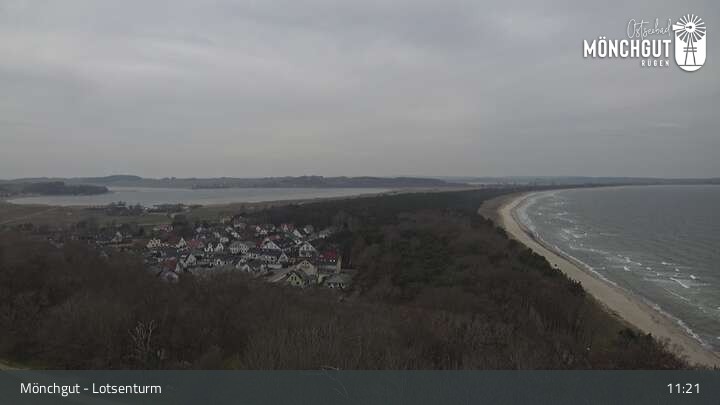 Die Webcam ist am Lotsenturm bei Thiessow positioniert und zeigt den Blick auf die Halbinsel Mönchgut, die zu Rügen gehört und an der Ostsee liegt.