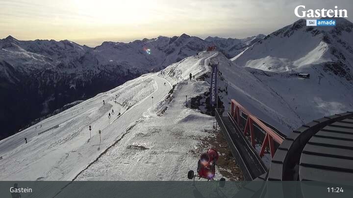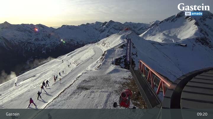 Die Webcam blickt von der Südseite der Bergstation am Stubnerkogel auf die umliegende Bergwelt von Bad Gastein.