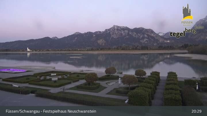 Die Webcam blickt auf den Garten von Ludwigs Festspielhaus in Füssen am Forggensee.