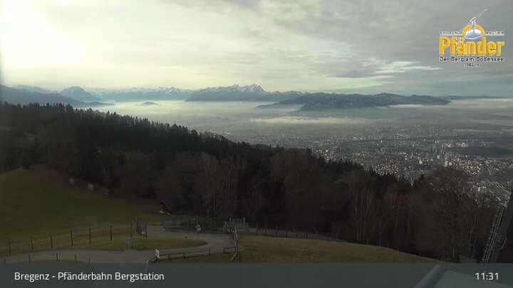 Die Video-Webcam zeigt einen traumhaften Panoramablick von der Bergstation am Pfänder hinunter auf den Bodensee und die Stadt Bregenz.