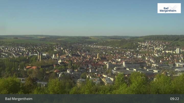 Diese Webcam zeigt dir den Stadtkern von Bad Mergentheim vom nordöstlich gelegenen Ketterberg aus. Bekannt ist die Stadt mit dem Heilwasser durch die Solymar Therme und den Wildpark Bad Mergentheim.