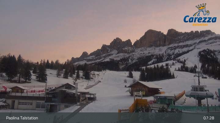 Hier siehst vom Tal in Karersee zur Rotwand.