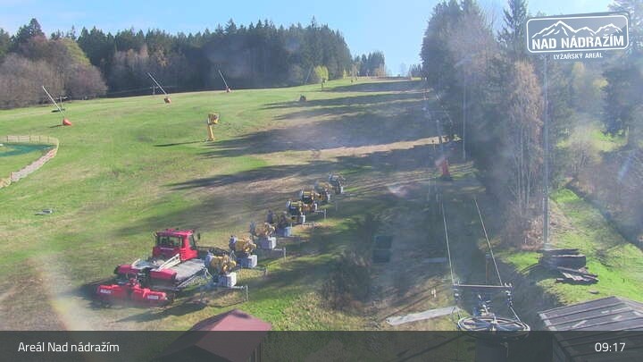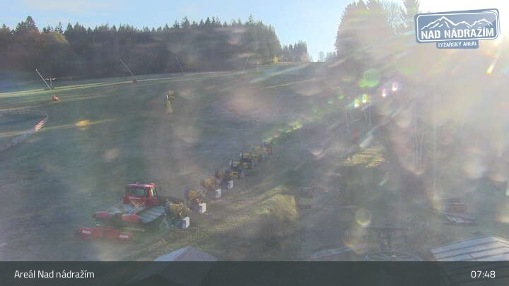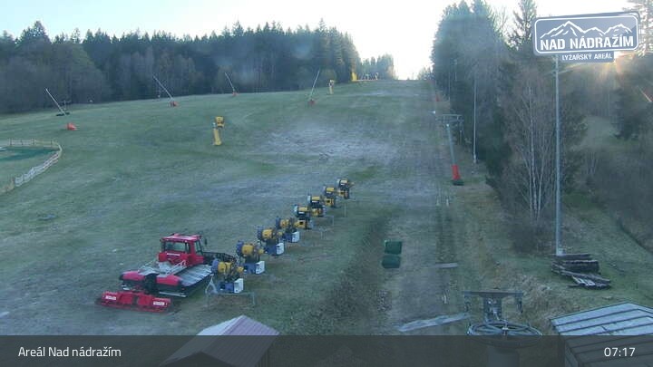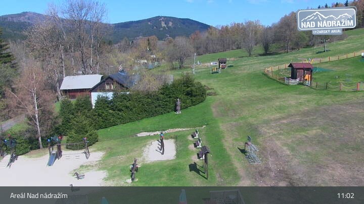 Die Webcam zeigt die Skilifte im Areal Nad nádražím bei Železná Ruda nahe der deutschen Grenze.