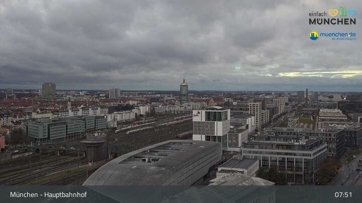 Diese Webcam zeigt dir einen Livestream über die Dächer von München, der Landeshauptstadt von Bayern und eine der größten Städte Deutschlands. Zu sehen ist das Areal des Hauptbahnhofes.