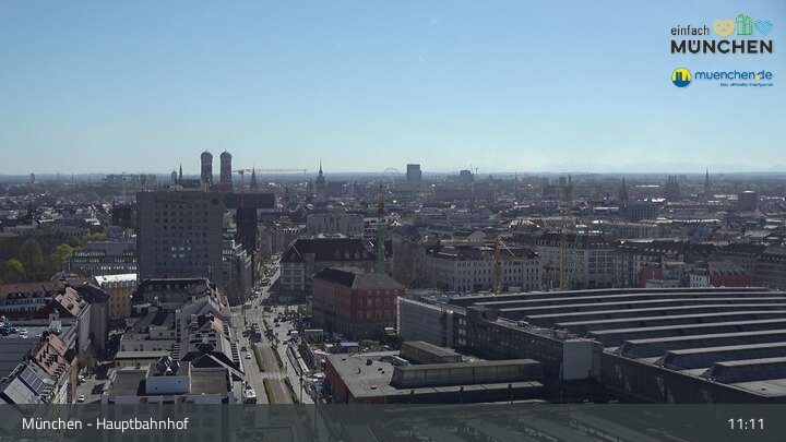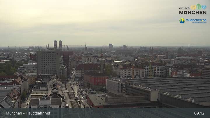 Diese Webcam zeigt dir einen Livestream über die Dächer von München, der Landeshauptstadt von Bayern und eine der größten Städte Deutschlands. Zu sehen ist das Areal des Hauptbahnhofes.