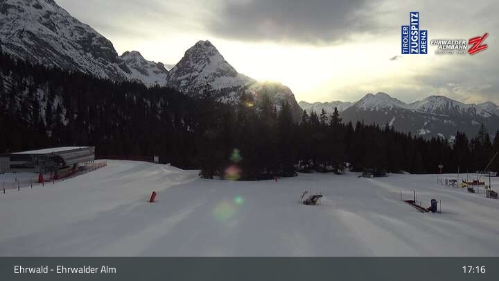 Webcam Sicht auf das Kinderland an der Ehrwalder Alm, 1,491 m