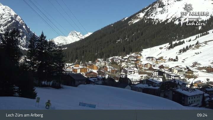 Genieße den Ausblick über die Ortschaft Oberlech sowie die umliegende Bergwelt.