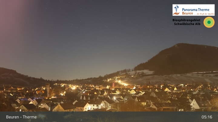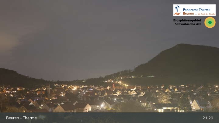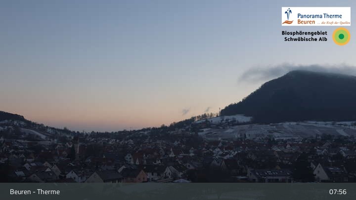Blick über Beuren in der Schwäbischen Alb. Die Webcam befindet sich in der Panorama Therme Beuren.