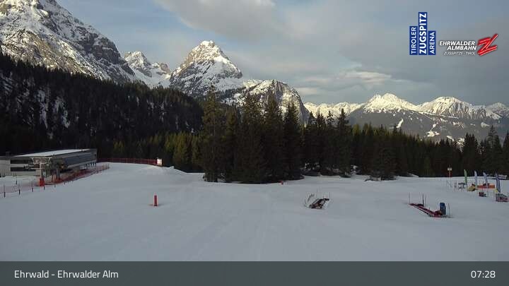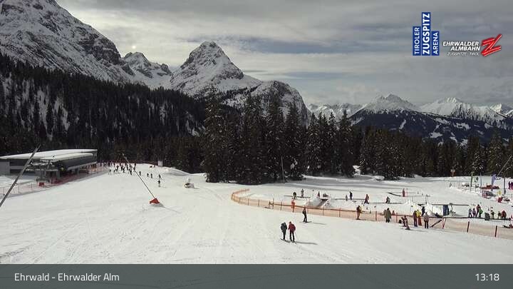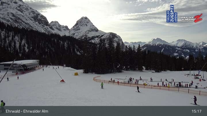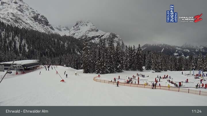 Webcam Sicht auf das Kinderland an der Ehrwalder Alm, 1,491 m