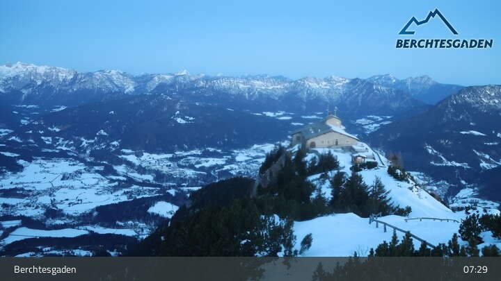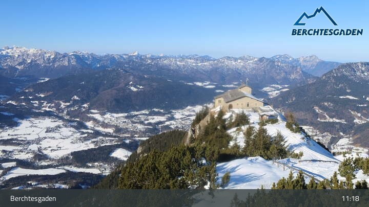 Vom Gipfel des Kehlstein zeigt diese Webcam unter anderem den Blick auf das Kehlsteinhaus und den Ort Berchtesgaden.