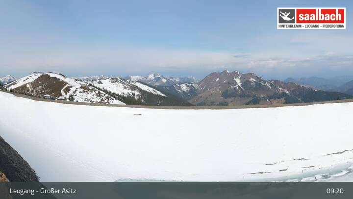 Blick vom Großen Asitz in Leogang auf die umliegende Bergwelt.