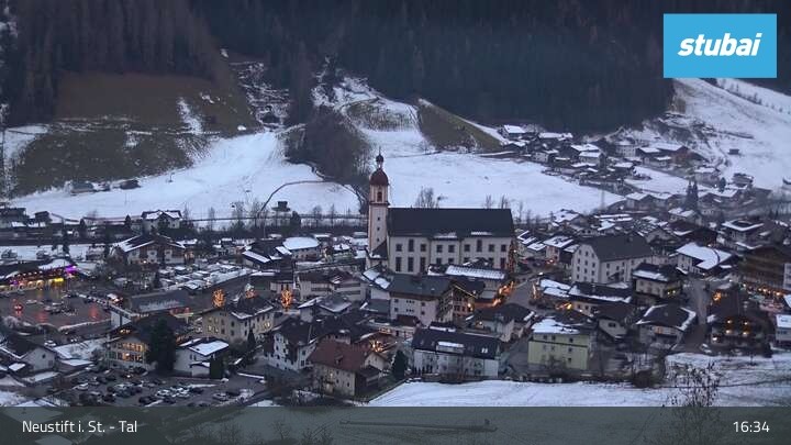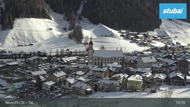 Die Webcam blickt auf den kleinen Ort Neustift im Stubaital.