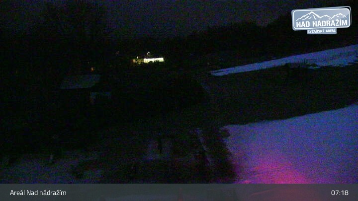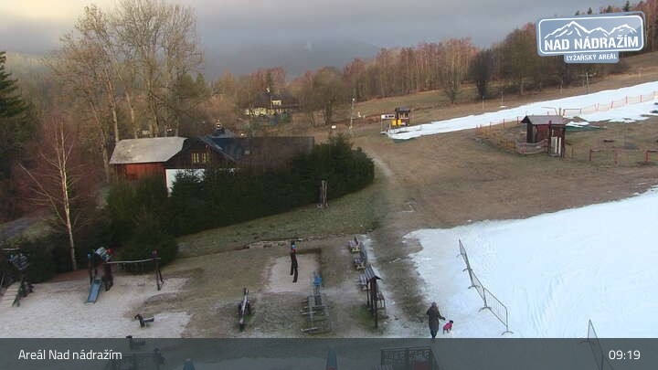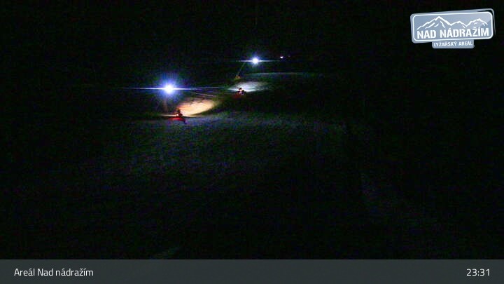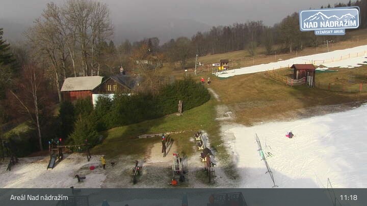 Die Webcam zeigt die Skilifte im Areal Nad nádražím bei Železná Ruda nahe der deutschen Grenze.