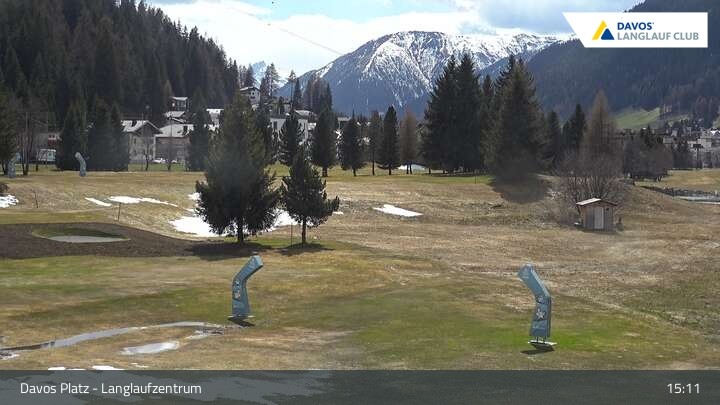 Blick auf den Golfplatz in Davos. Im Winter befindet sicher hier das Langlaufzentrum.
