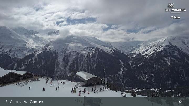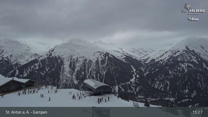 Genieße den Ausblick vom Gampen Restaurant an der Bergstation der Gampenbahn auf die umliegende Bergwelt.