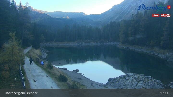 Die Kamera blickt auf den Obernberger See am Brenner.