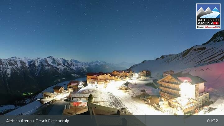Webcam Aletsch Arena: Blick auf die Fiescheralp, 7283 ft