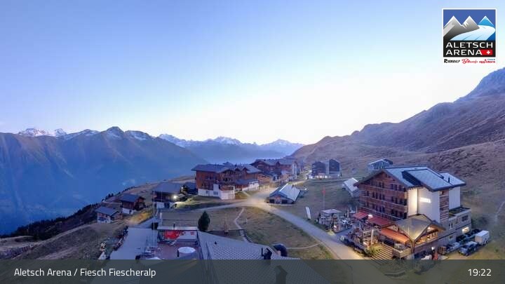 Webcam Aletsch Arena: Blick auf die Fiescheralp, 2,220 m