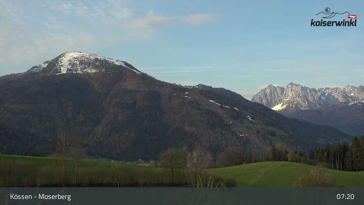 Die Webcam auf dem Moserberg in Kössen blickt auf die umliegende Alpenwelt.