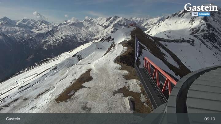 Die Webcam blickt von der Südseite der Bergstation am Stubnerkogel auf die umliegende Bergwelt von Bad Gastein.