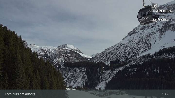 Die Kamera bietet einen schönen Ausblick auf den Ort Zug bei Lech Zürs am Arlberg und zeigt unter anderem auch die Zugerberg-Gondelbahn.