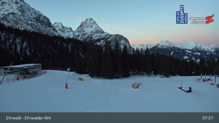 Webcam Sicht auf das Kinderland an der Ehrwalder Alm, 1,491 m