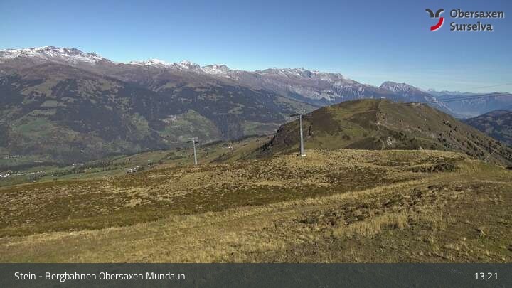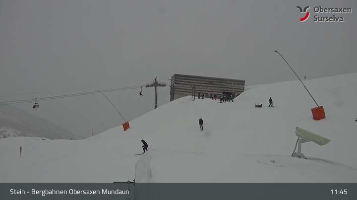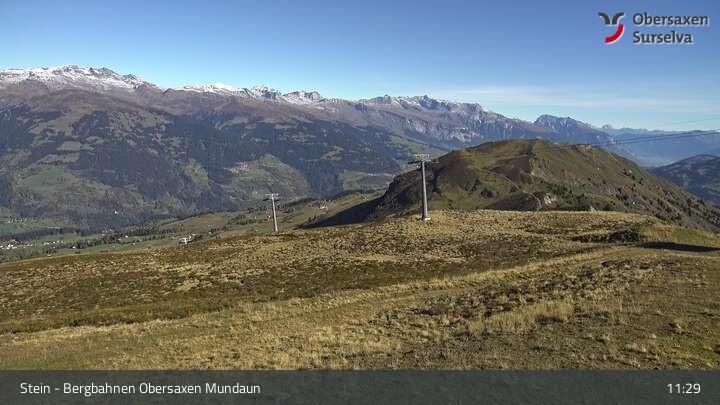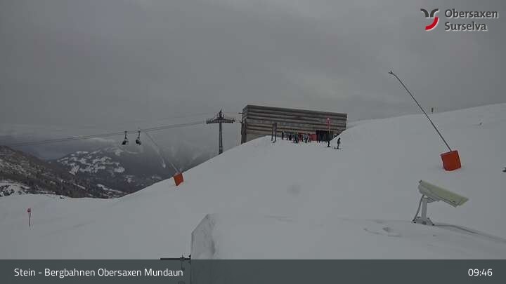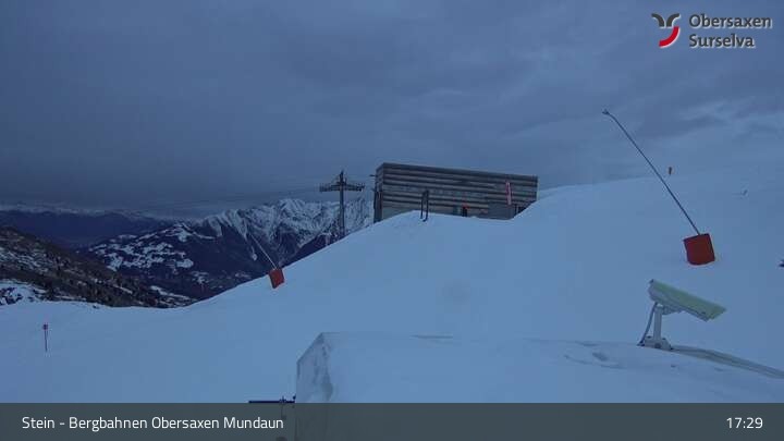 Die Webcam zeigt die Bergstation des Misanenga - Untermatt Lifts in Obersaxen in Graubünden. Die umliegende Alpenwelt ist ideal für Wanderungen und Mountainbiken geeignet.