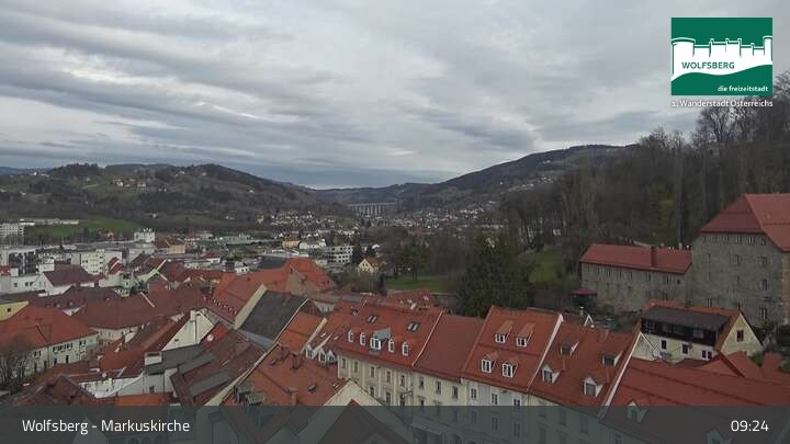 Diese Webcam befindet sich an der Markuskirche im Kärntner Ort Wolfsberg (Lavanttal, Österreich). Du kannst unter anderem die Altstadt sowie das Schloss Wolfsberg erkennen.