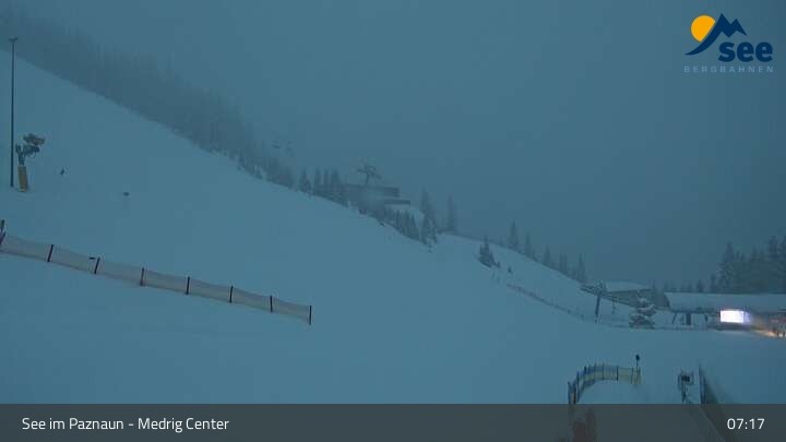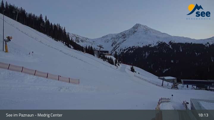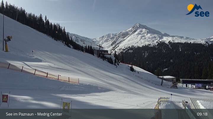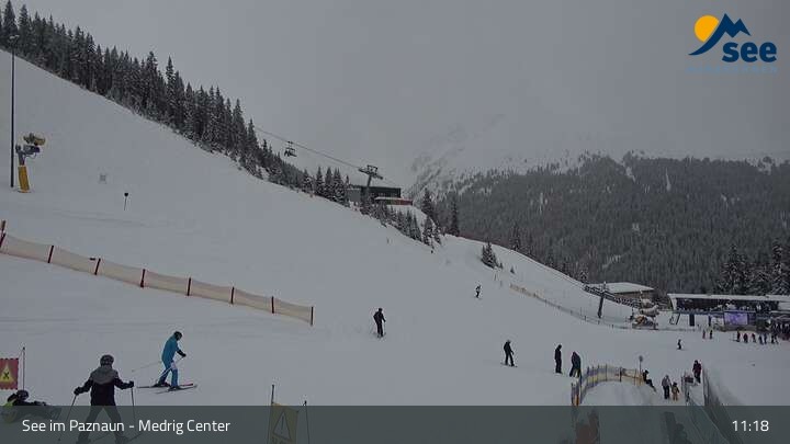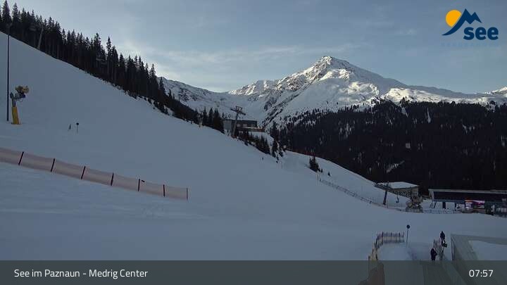 Die Webcam in See eröffnet den Blick vom Medrig Center auf rund 1.800 Metern auf die Bergstation der Medrigjoch-Gondelbahn.
