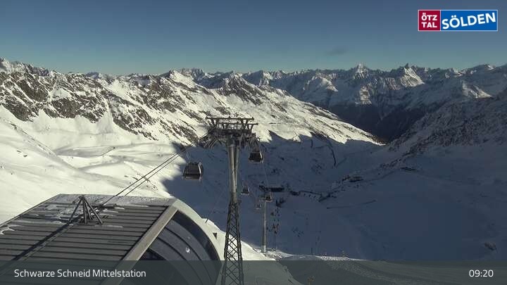 Webcam Sölden - Gondelbahn Schwarze Schneid, 2,953 m