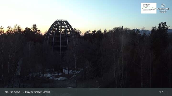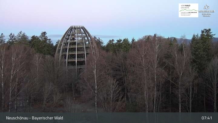 Die Kamera befindet sich in Neuschönau auf dem Dach des Besucherzentrums Hans-Eisenmann-Haus im Nationalparkzentrum Lusen im Bayerischen Wald. Zu sehen ist auch der über 40 Meter hohe Turm des Baumwipfelpfads.