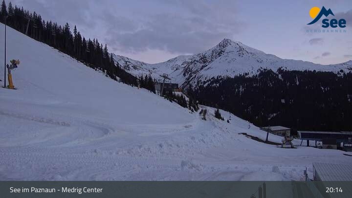 Die Webcam in See eröffnet den Blick vom Medrig Center auf rund 1.800 Metern auf die Bergstation der Medrigjoch-Gondelbahn.