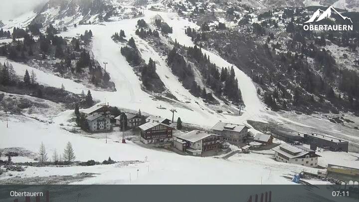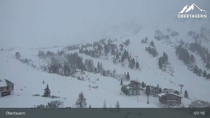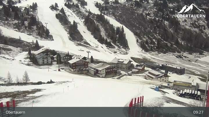 Blick auf die Pisten in Obertauern aus Sicht des Panorama Hotels