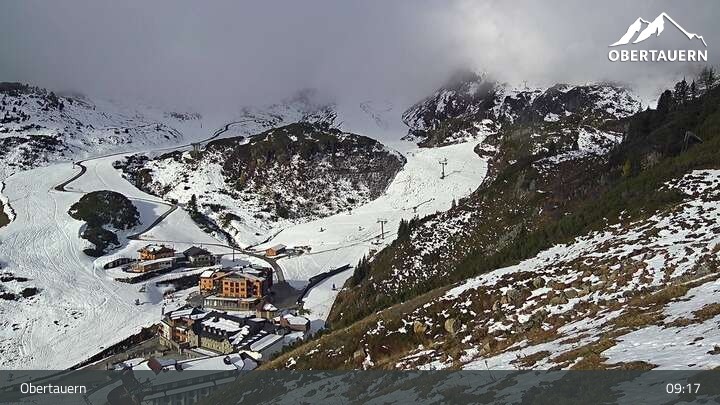 Blick auf die Pisten in Obertauern aus Sicht des Panorama Hotels