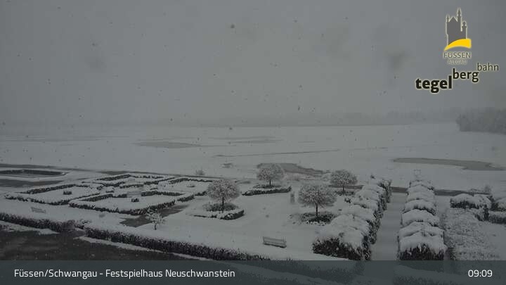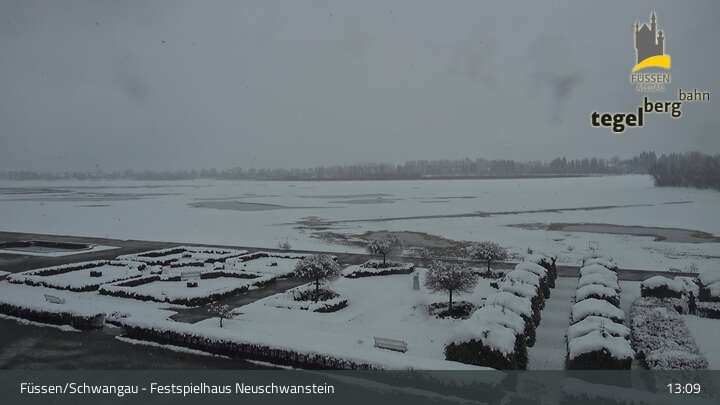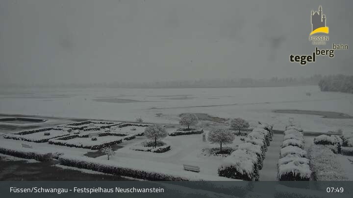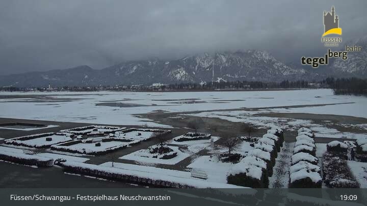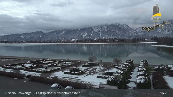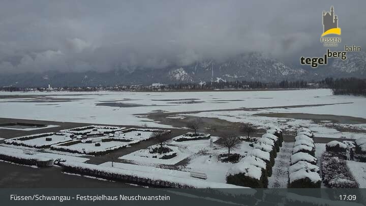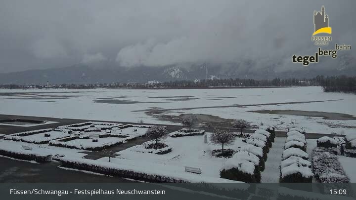 Die Webcam blickt auf den Garten von Ludwigs Festspielhaus in Füssen am Forggensee.
