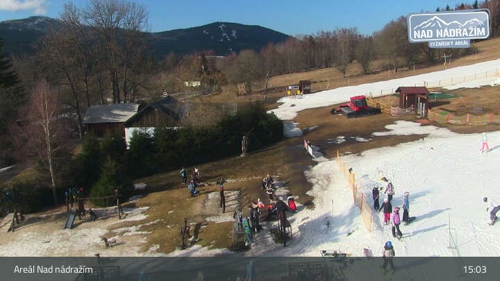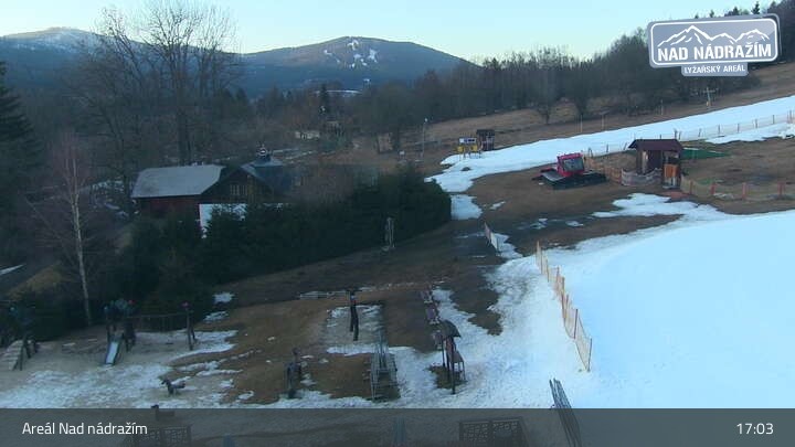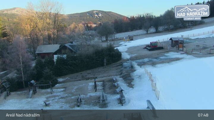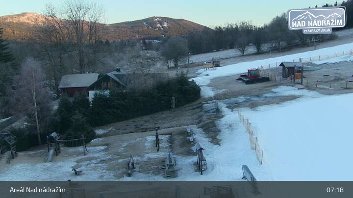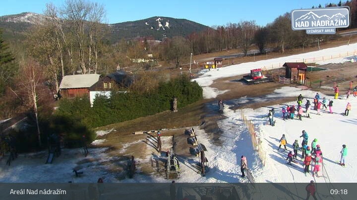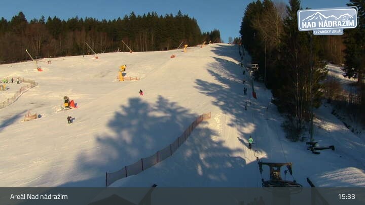 Die Webcam zeigt die Skilifte im Areal Nad nádražím bei Železná Ruda nahe der deutschen Grenze.